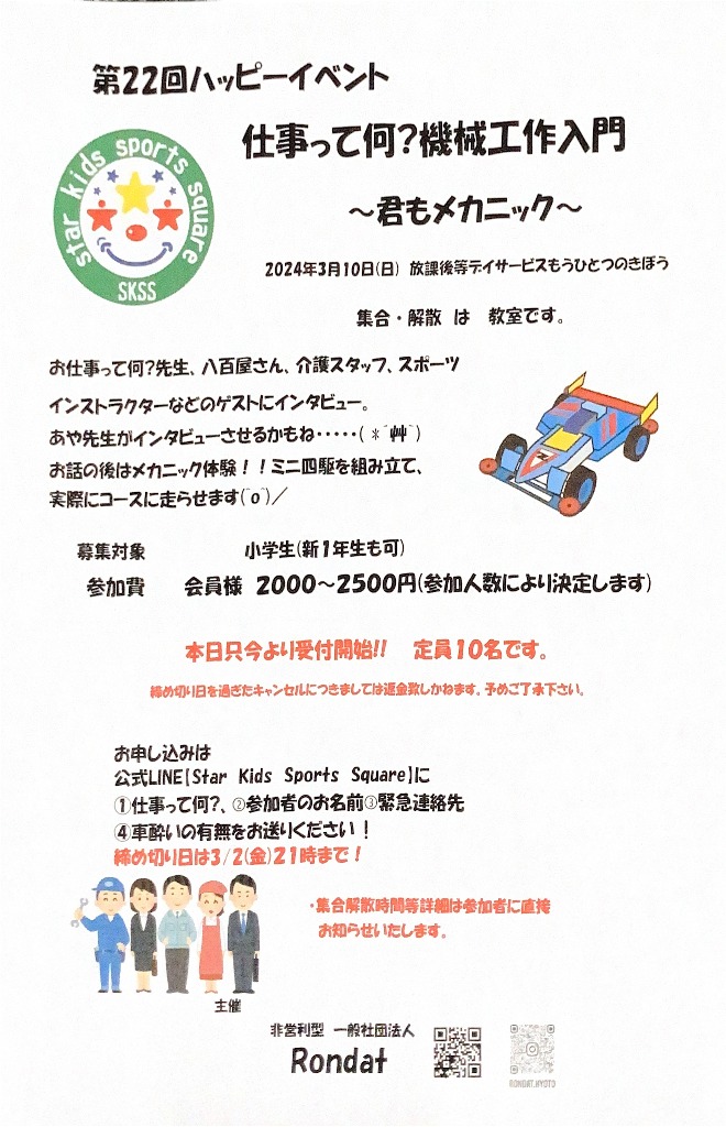 定員人数少ないのでお早めのお申込みをおすすめします(^^♪
